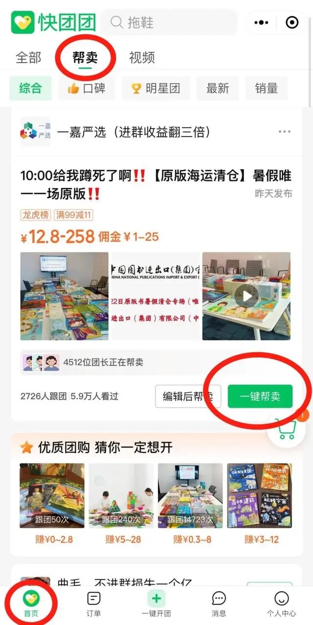 成為團長的幫賣后,在快團團首頁點擊-幫賣,這里面全是可以幫賣的團。