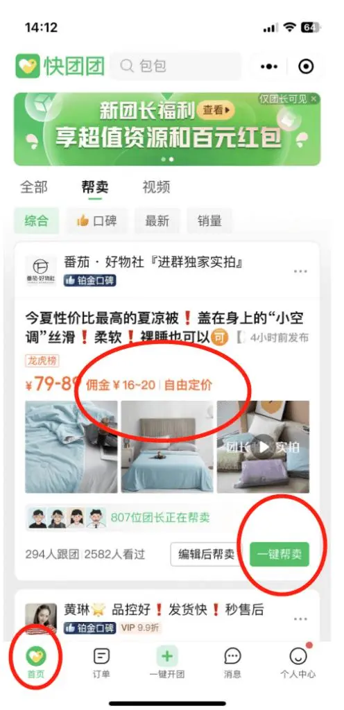 所以快團(tuán)團(tuán)一單賺多少錢呢?如果你是大團(tuán)長(zhǎng),貨源是你自己的,你想定價(jià)多少就是多少,只要符合市場(chǎng)標(biāo)準(zhǔn),能有用戶群認(rèn)可就行。而如果你是幫賣團(tuán)長(zhǎng)呢?主要看貨源團(tuán)長(zhǎng)怎么讓利,給你多少傭金,一般是5%~30%左右的傭金比例,主要還是看商品價(jià)格。